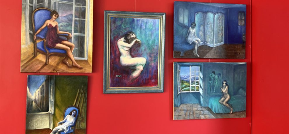 Huiles et pastels nous offrent une palette douce avec une matière plus profonde pour les pastels qui créent pour l’ensemble une atmosphère intime légèrement surannée. Les sculptures portent un souffle plus fort, pour certaines elles évoquent des terres lointaines. Ses tableaux sont faits d’émotion et de mystère, de tristesse peut-être…